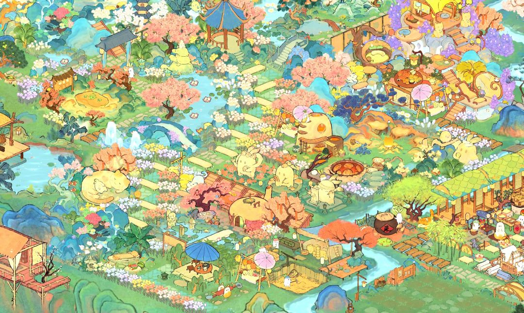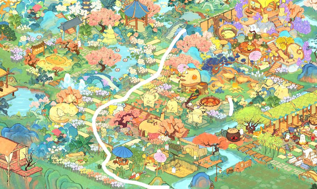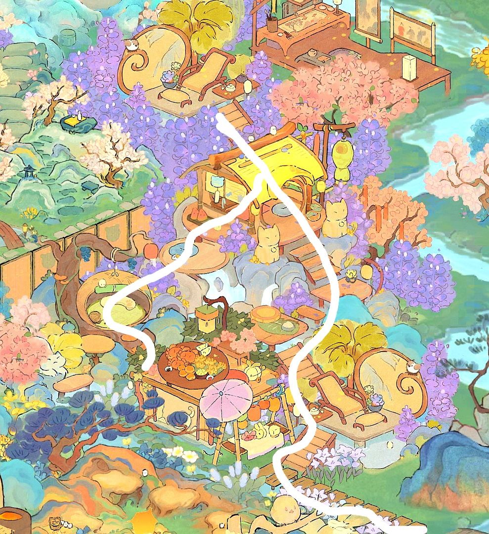中间牡丹亭一条路是借鉴的其他姐妹的布局,在此基础上继续发挥,右上猫窝突显层次感,