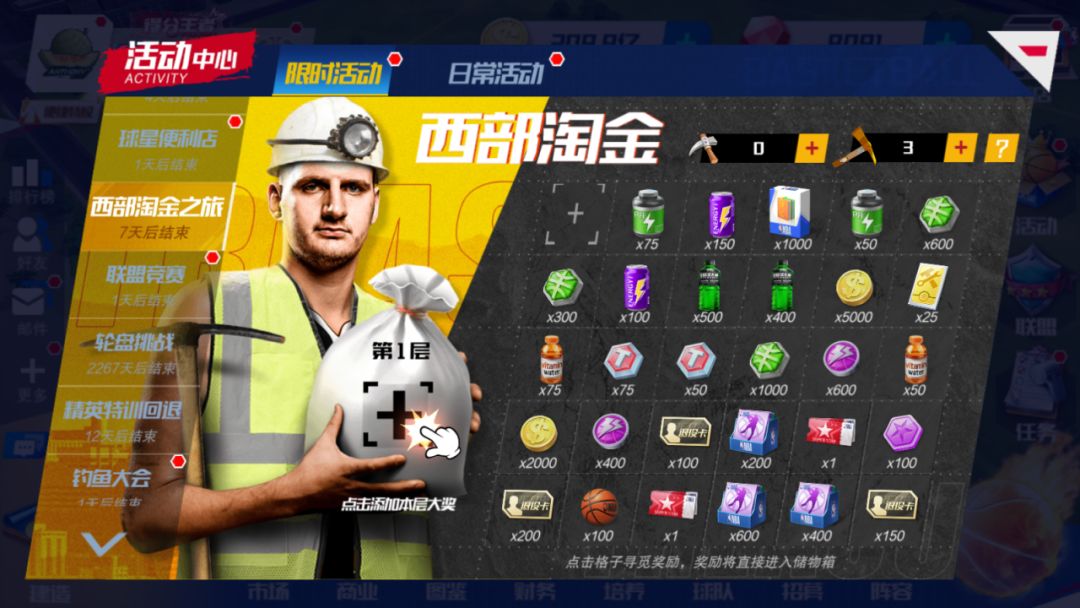 锁定需要的大奖,拿起铁锹开始淘金探险!每挖开一个区域,都可以获取到奖励,挖到锁定大奖,即可进入新一层的淘金探险。一起去西部淘金吧,在通往西部的路上等你发现!(黑金球员新增罗伯特森)