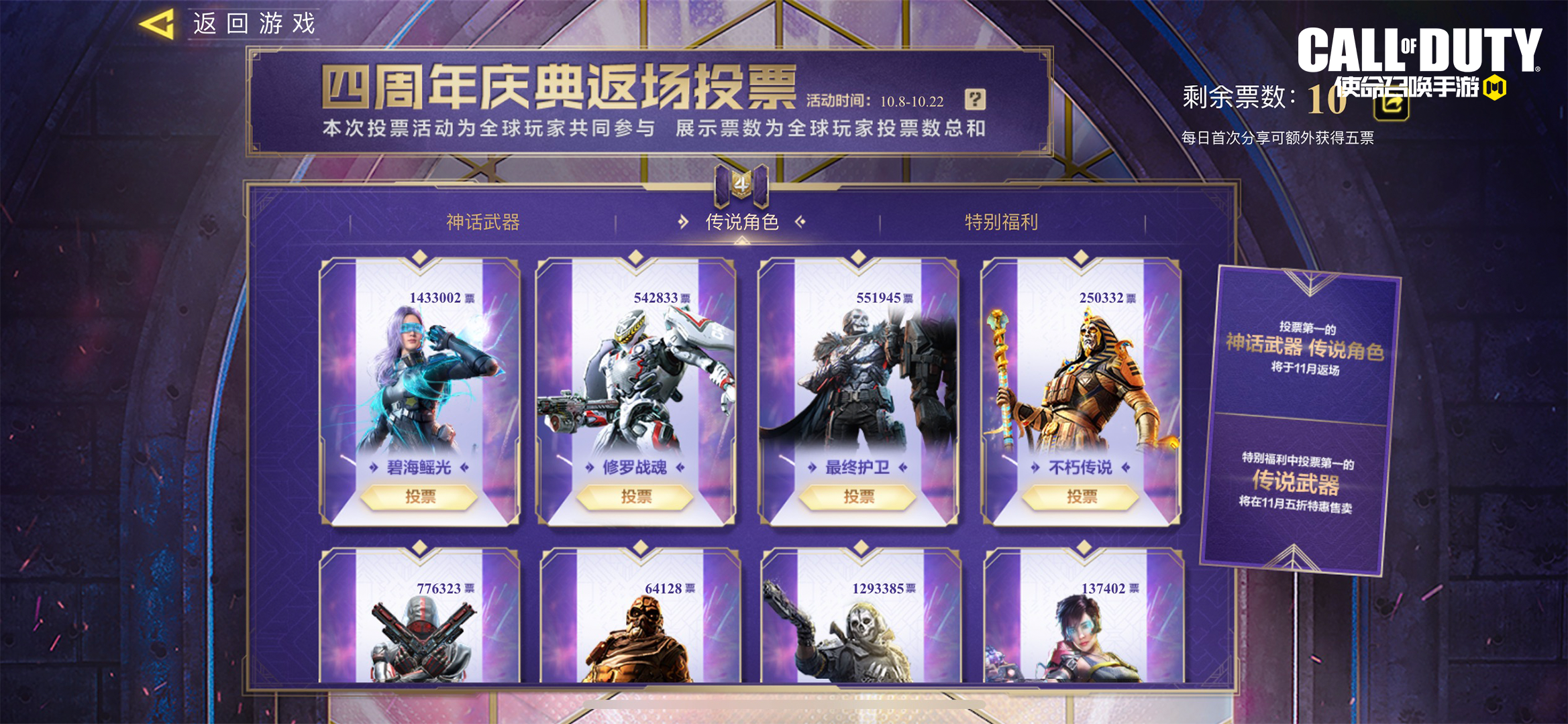 四周年庆典返场投票 即将结束