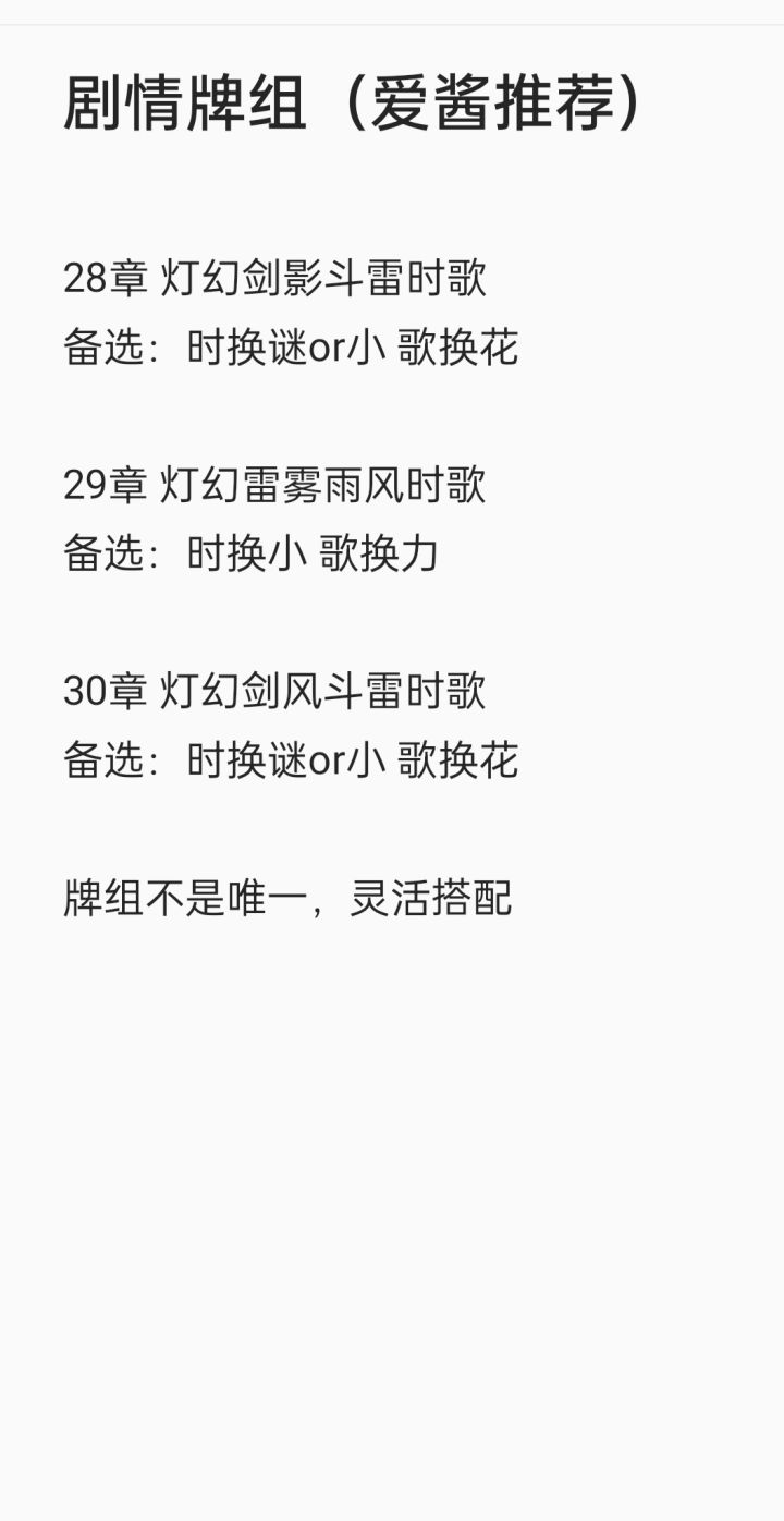 剧情28-30章难住挺多刚刚入门的库洛魔法使,牌组推荐看图(角色牌有火狼带火狼,没有带小可,抽齐一个系列小小樱就行),下面是打法解析。