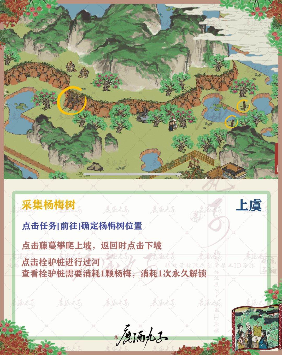 🌸点击栓驴桩进行过河,查看栓驴桩需要消耗1颗杨梅,消耗1次永久解锁