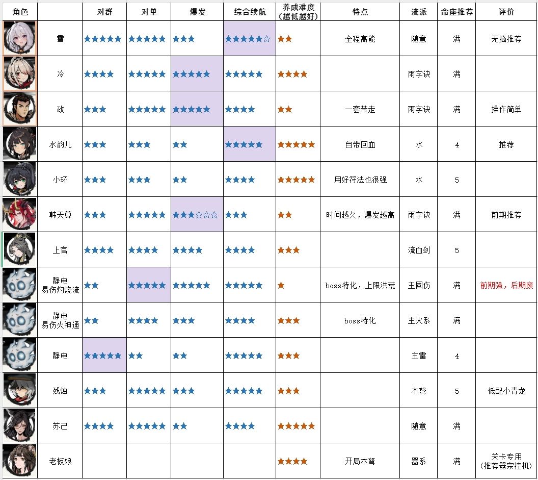 当前推荐流派:雨字诀,凝冰,双火神通,灼烧爆炸。