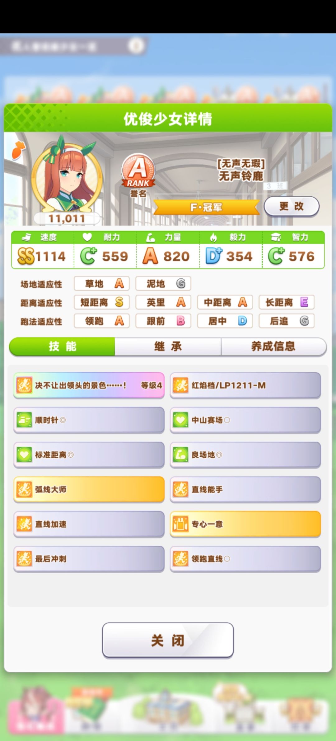 铃鹿没有力量加成育成很有点头疼,游戏结果来看,最终阶段小栗帽和大树与npc拉开的差距都比铃鹿更大。(没有逃亡者?是的,没钱。分析技能后我认为凭借面板足够领跑到开出固有,然后就没有然后了)
