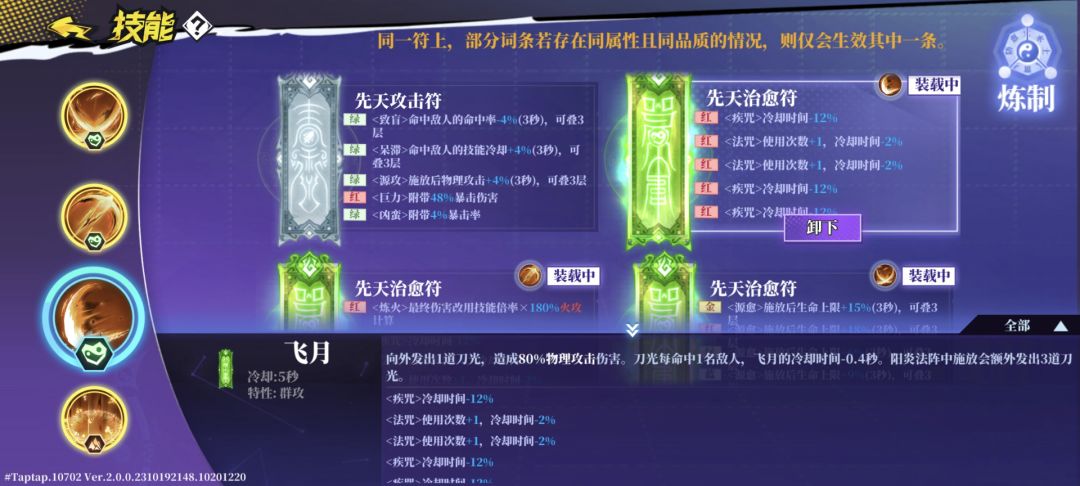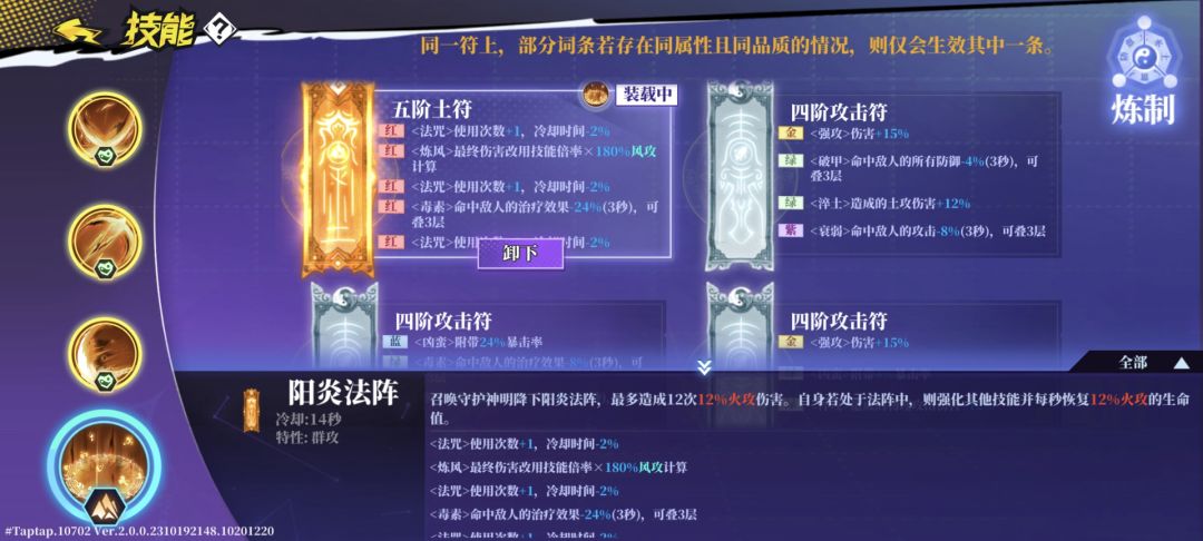 灼妖20阶魂阵:触发灼妖后,释放技能就可以回血。