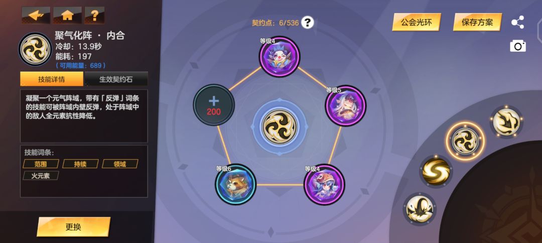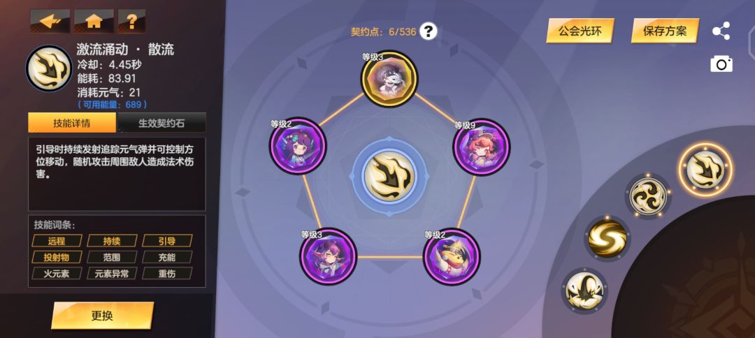 2、是4激流,4元气外溢,不过这个要三技能触发伤害才能触发二技能的这个,点了三技能输出又跟第一种思路一样了,没有减伤的了,资源消耗也比较多