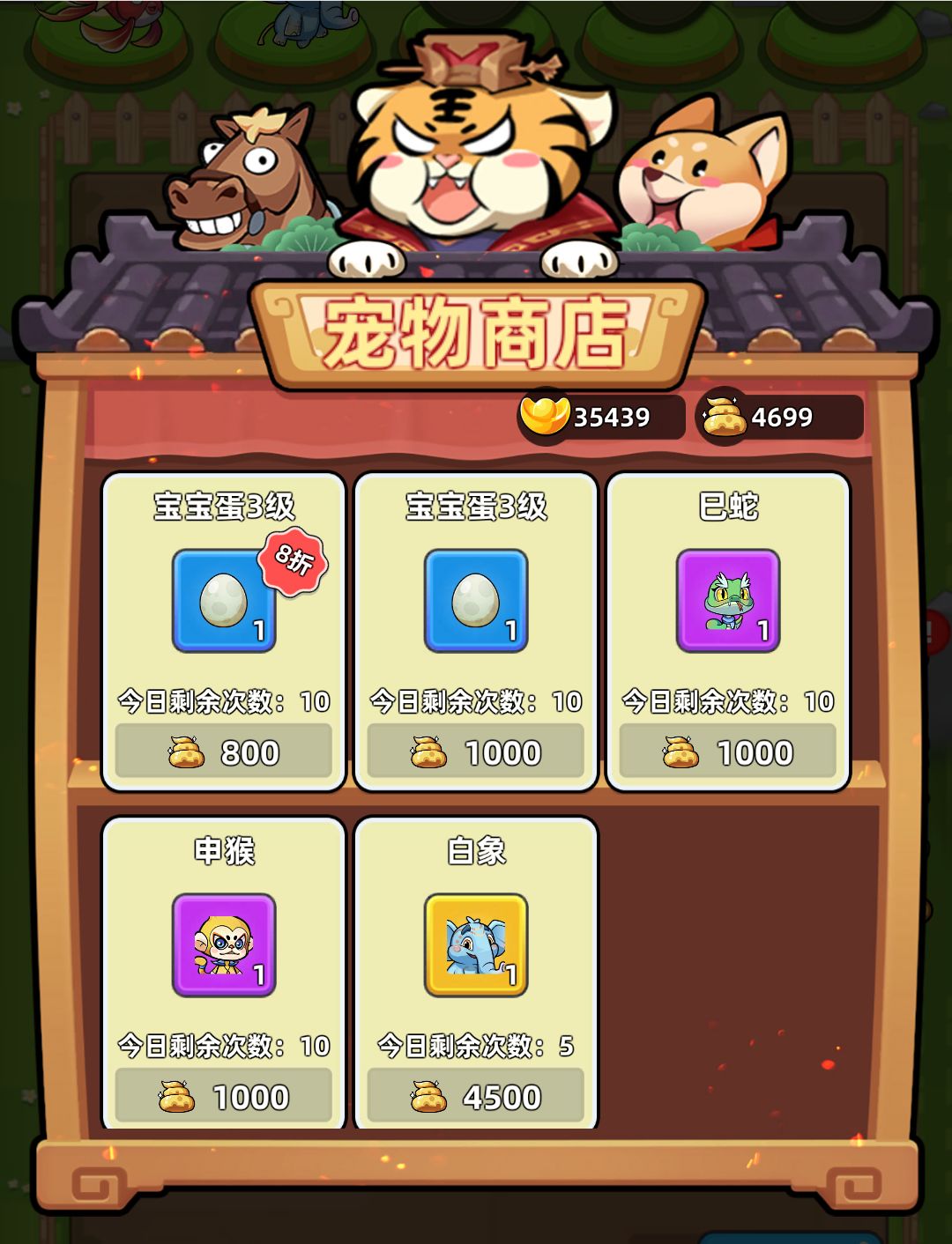①宠物商店。这里的宝宝蛋不加宝宝蛋经验值,所以优先级放最后。其他三个分别加法攻物攻攻击,先选自己想要的吧。宠物升级只升数值不升翔产量和技能,所以开了就行。