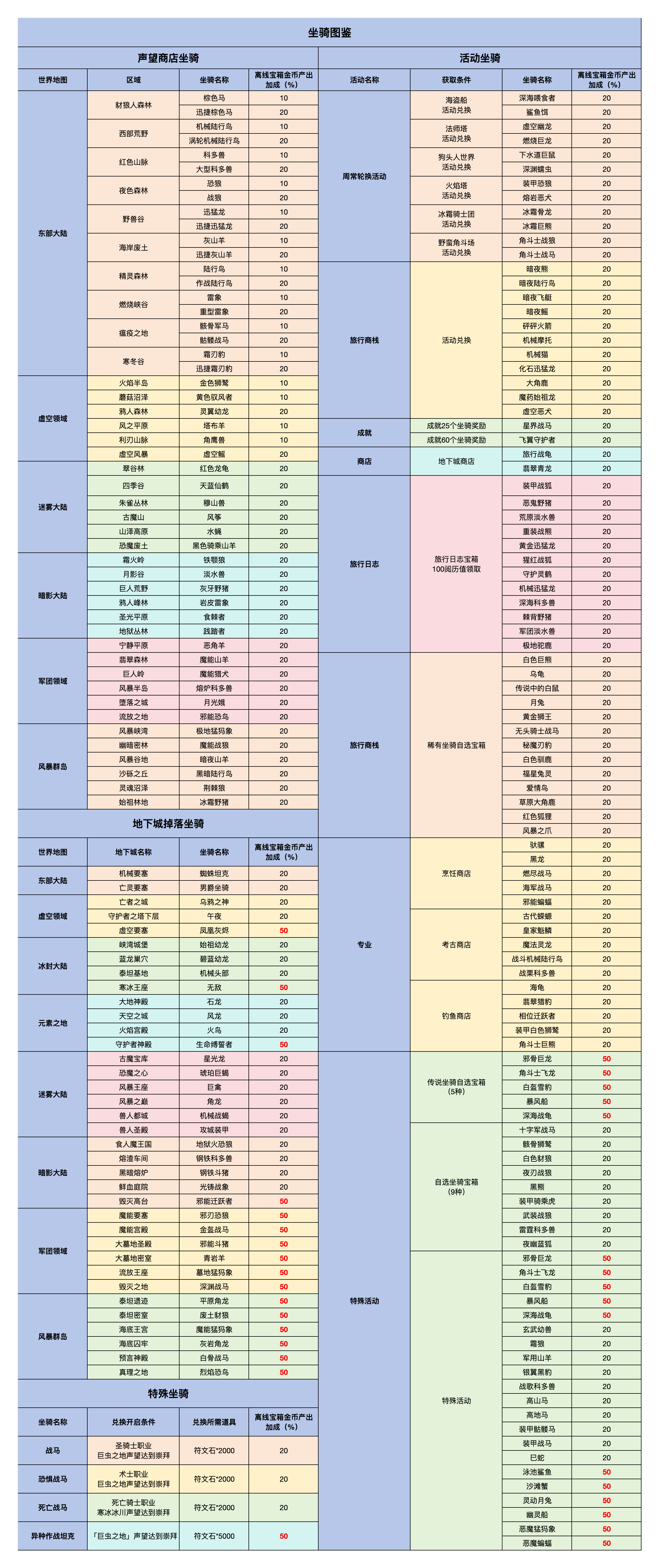 包含声望商店坐骑、活动坐骑和特殊坐骑