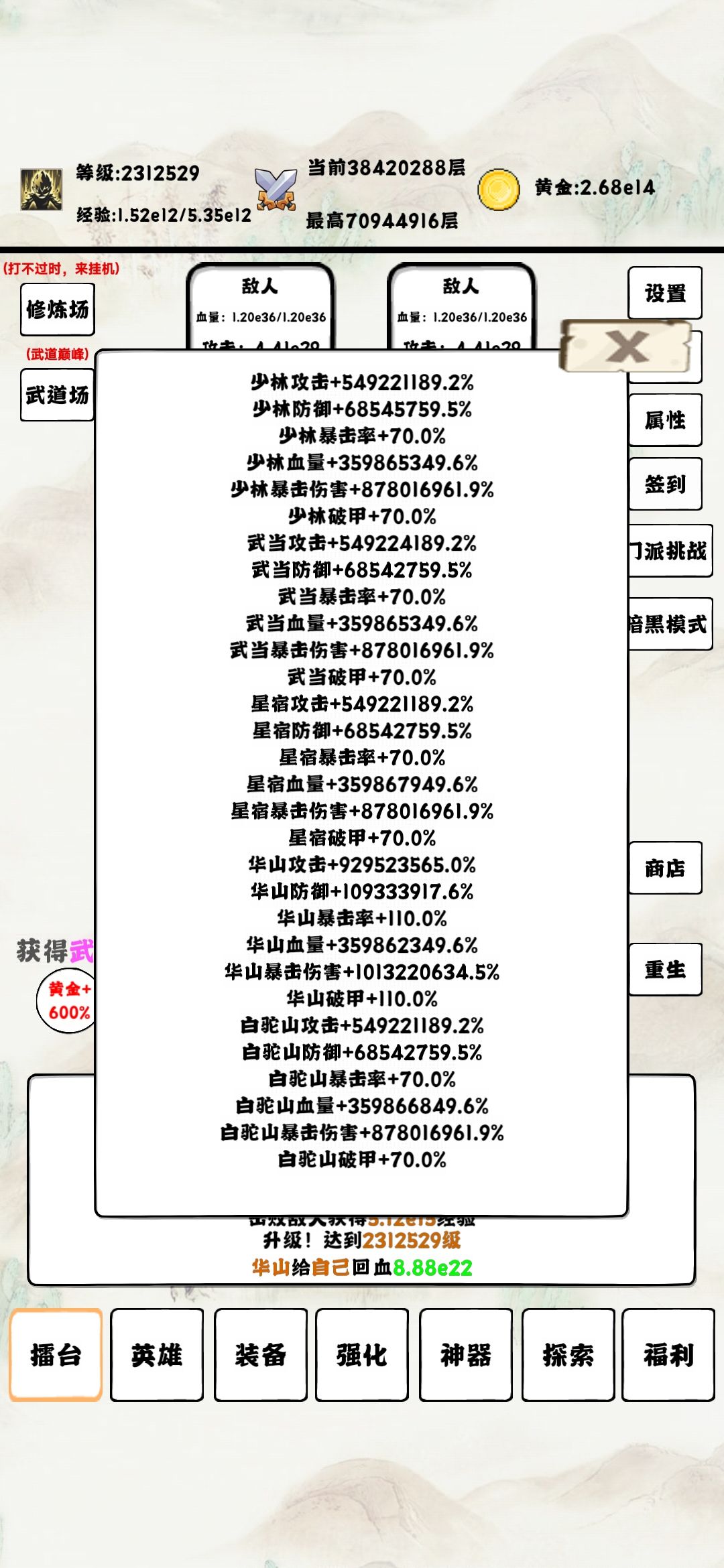 三天肝过5kw层,现在伤害已经停滞了,弱弱的问一句,伤害还能再呈指数增长吗?感觉已经没啥提升了啊,武道场太肝了,目前也就6000层。