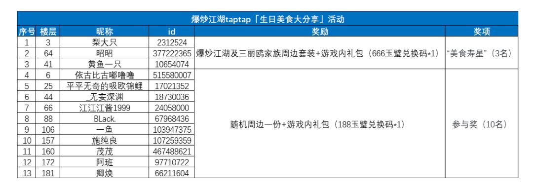 “美食寿星”(3名):爆炒江湖及三丽鸥家族周边套装+游戏内礼包(666玉璧兑换码*1)