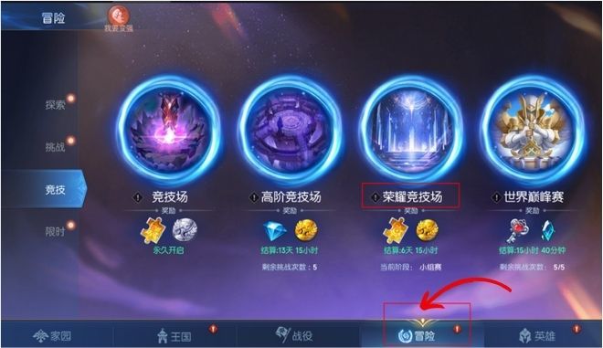 荣耀竞技场每两周开启一次。小组第一将获得晋级赛资格,晋级32强后,在周六21点10分后获得相应奖励。