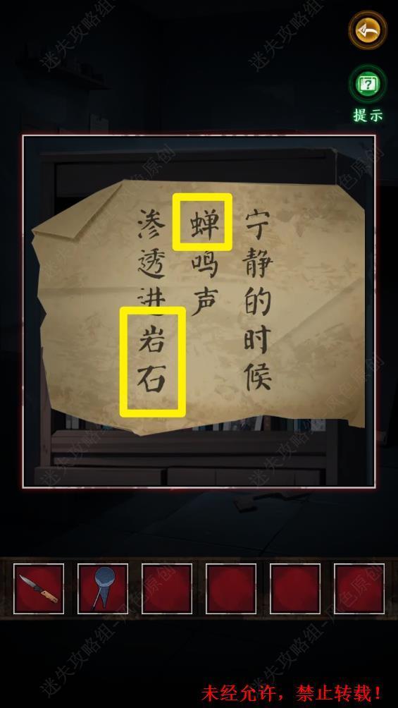 64.将【鸣蝉】放在岩石上,打开被岩石阻挡的门。 64