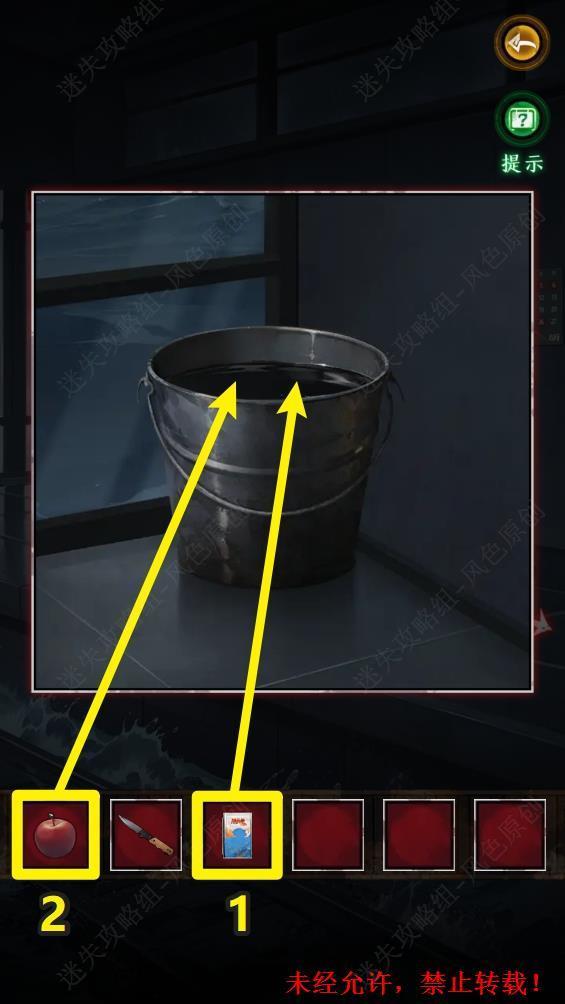 51.首先将【火柴】放入水桶中,再放入【苹果】。 51