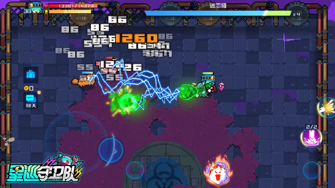 例如,周五的试用潜能卡“闪电链”,每次攻击都有概率在攻击目标间形成闪电链,面对“迷恋猫”这类灵活的群体BOSS,在亮晶晶努力的“突突突”攻击下,也能够轻松通关呢!