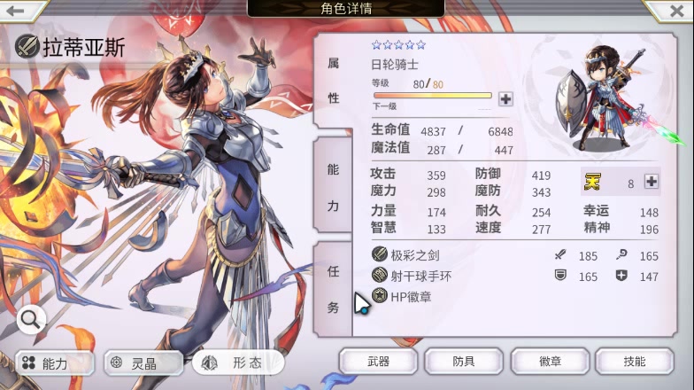 下方是装备、灵晶配置: