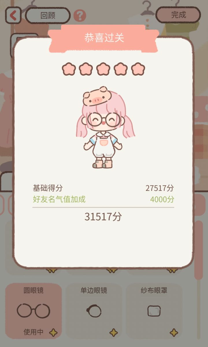 衣服:猪猪背带裤 鞋子:粉色猪猪鞋 头发:粉色马尾发 帽子:猪猪头饰 面饰:圆眼镜