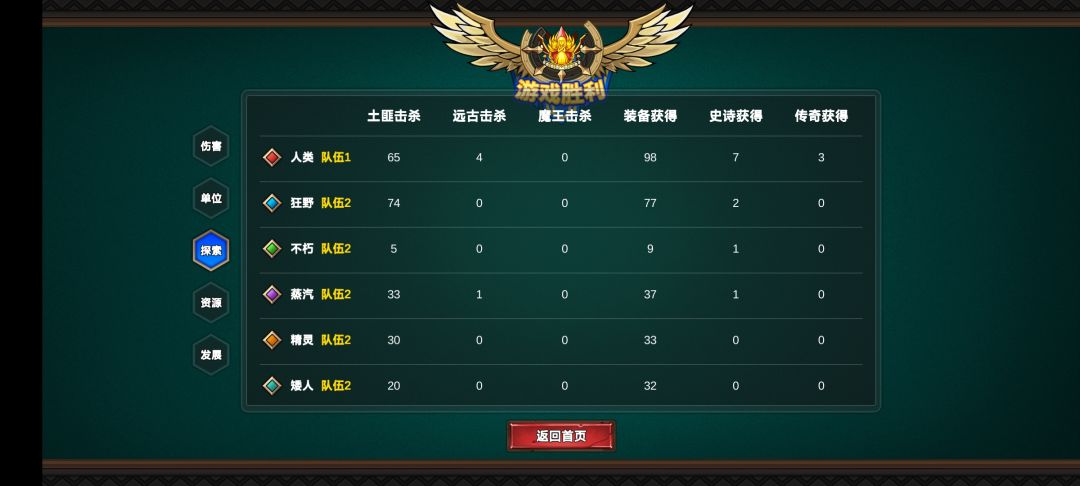 后面就是平推的速度了,这个点矮人,机械是纯平推。精灵我两个档都灭的早,第一个档灭三家后被狂野和不朽堵住了,一个放毒减治疗,一个流血减移速(这个AI都要在30回合左右才能出现(AI的二本))