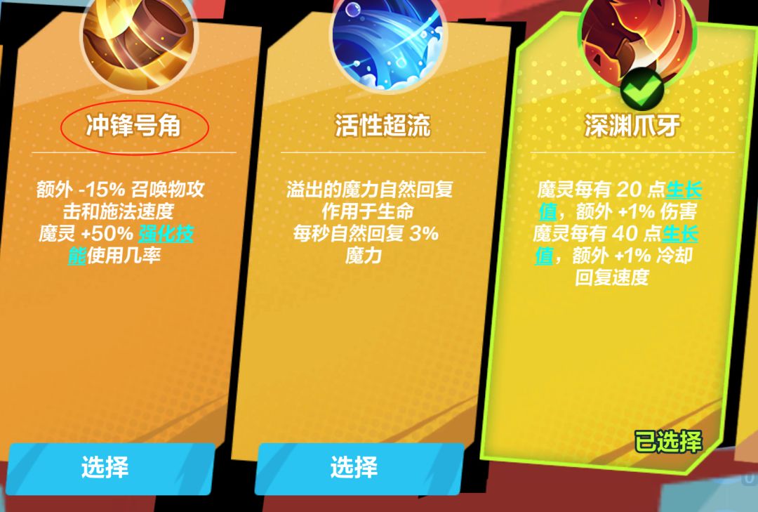 如果想加魔灵强化技能使用几率可以点冲锋号角,但是增伤效果不如深渊爪牙