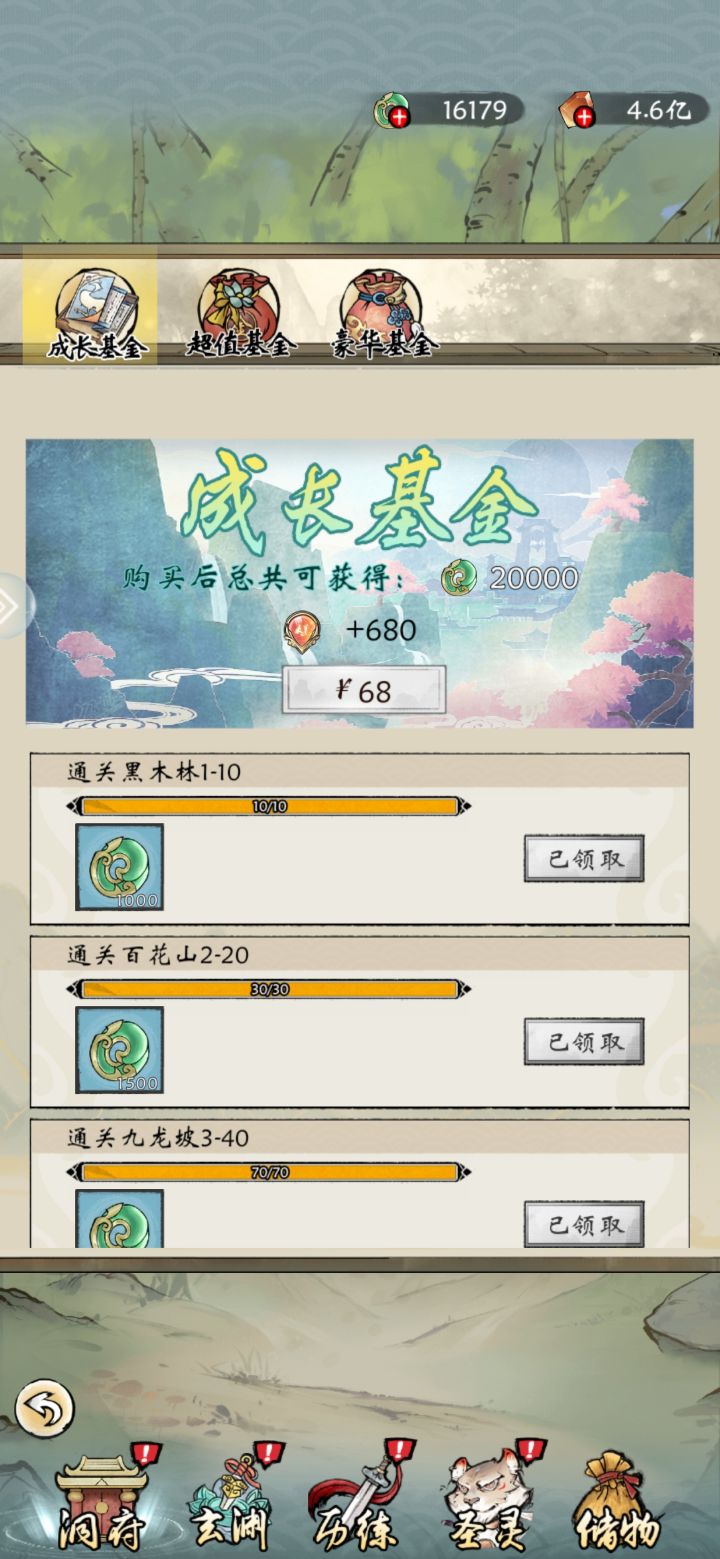 都是标配,月卡+季卡,每日每周每月的礼包看着自己能力买没啥好推荐的,(重点)图345是第二天还是第三天会出,68成长基金必买因为它是唯一一次性的,拉满一共两万玉很可观,剩下的128 328基金 看自己钱包买,能买全都要!