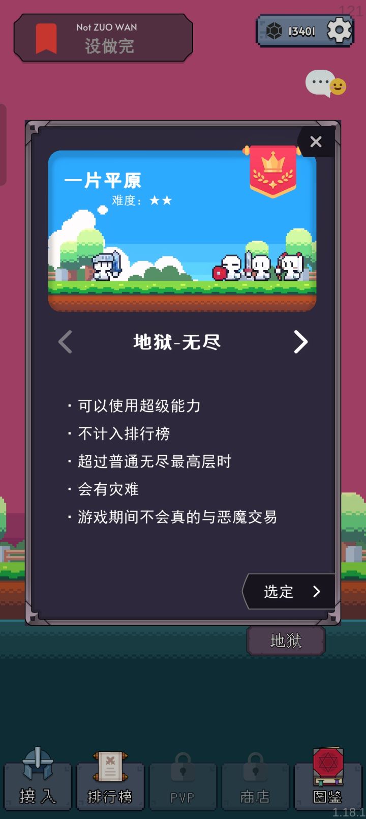 在最新大版本1.18中,其主要玩法有:①关卡模式;②地狱模式;③无尽模式。