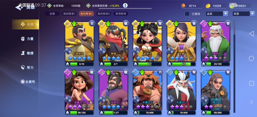 召唤阵容:李世民武则天韩信萧何陈平刘邦女娲东皇木鹿祝融夫人