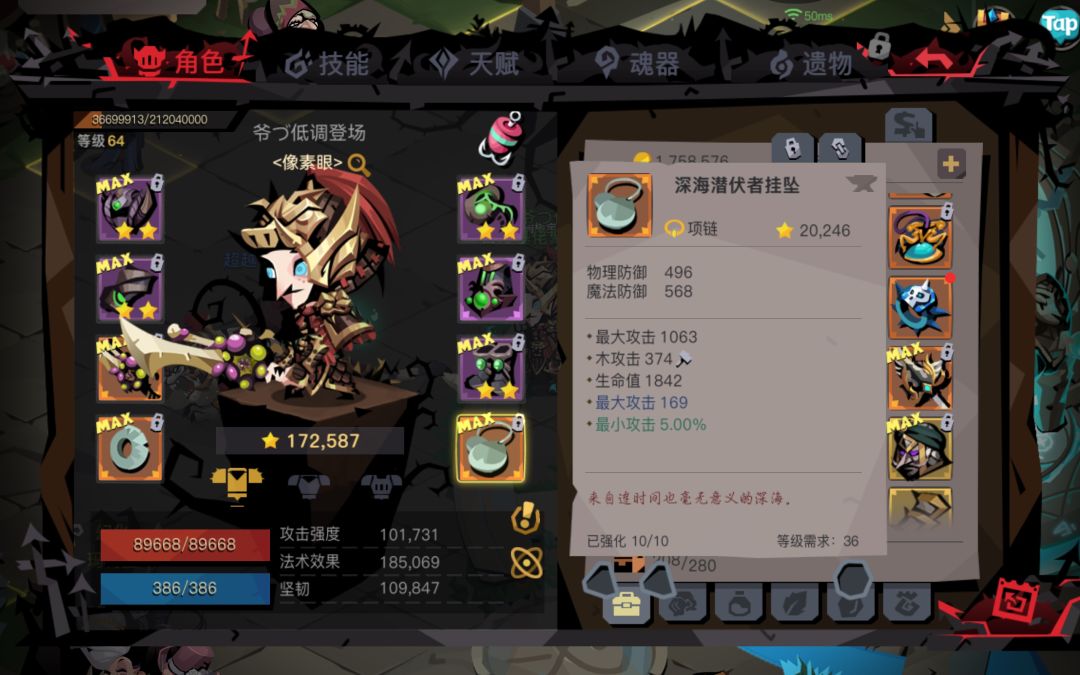 面板:挂饰和项链都是大5,梦境套也是一层一层往上刷上去的