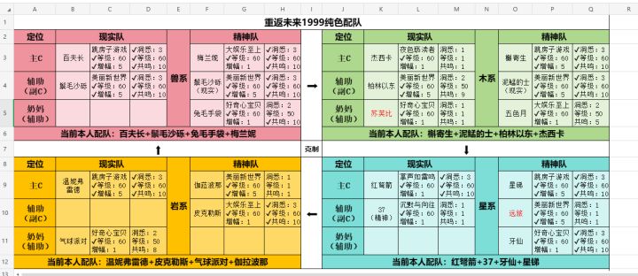 根据当前角色强度、灵感分类和属性,归纳的纯色配队分享
