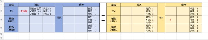 4、由于灵系未锈凯,智系6,角色不多,暂时没法组纯色队,定位可以见表格(6看直播定位是辅助,具体还需等池子出来看具体情况),大家按照3的组队原则进行搭配即可