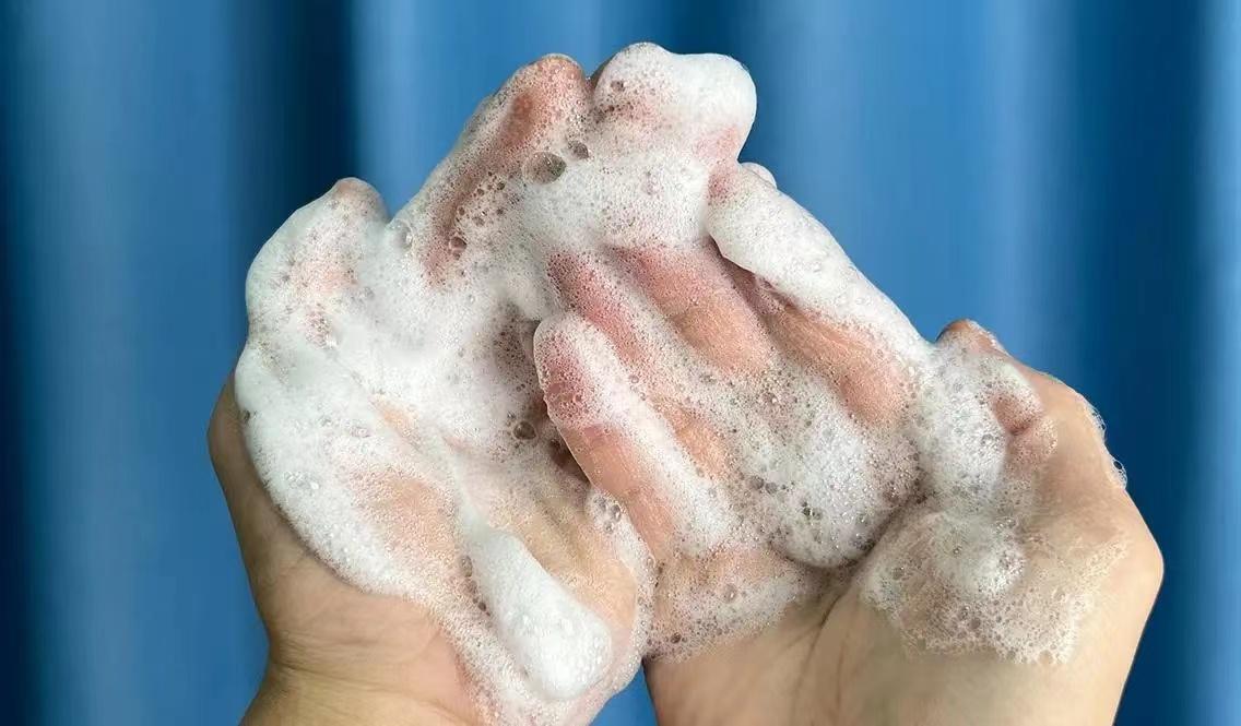 加水徒手揉搓,容易起泡,泡沫丰富绵密。