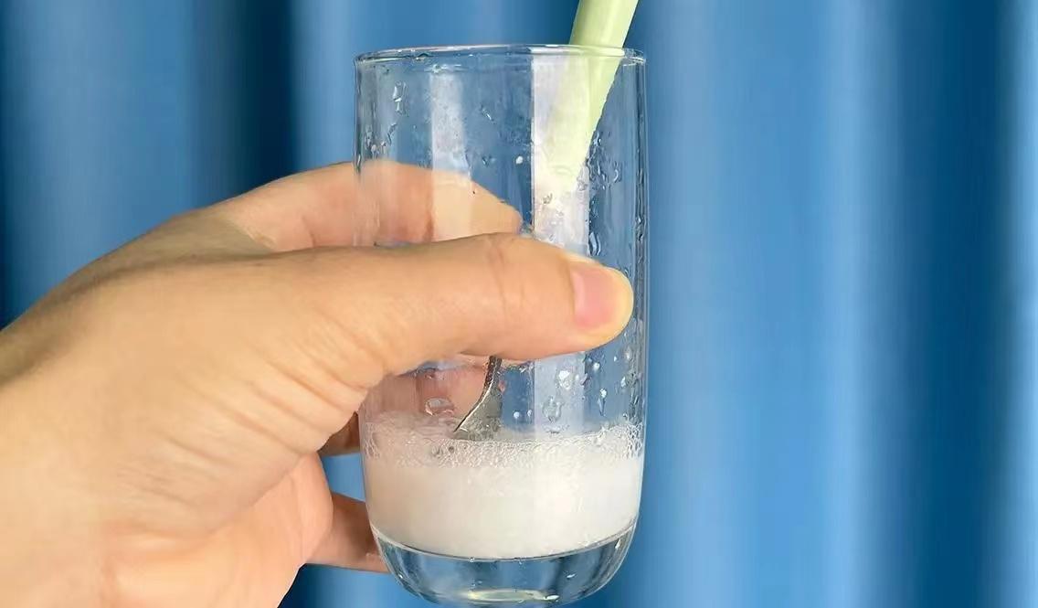 先看质地,白色乳状的质地,质地比较粘,推开可以拉丝,没有颗粒磨砂感。