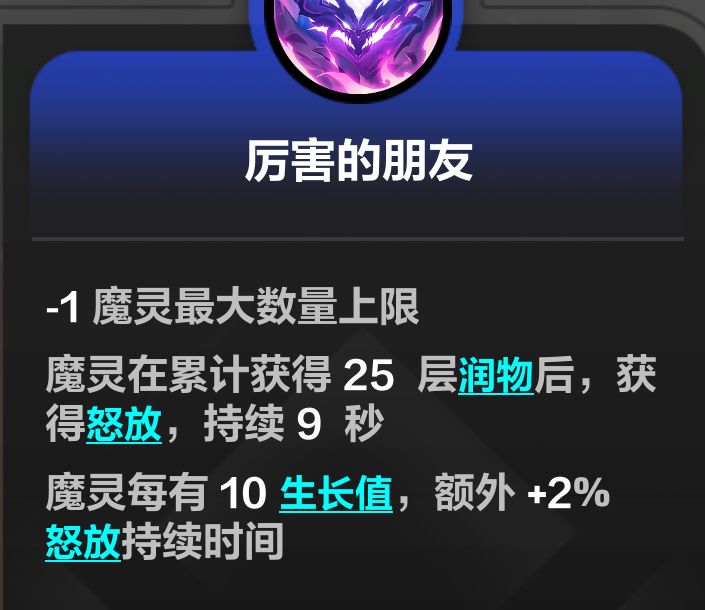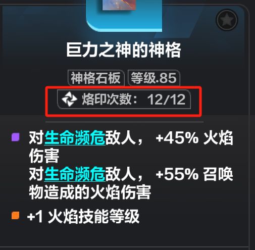 其他重要的词条:光环效果、减魔力封印、激发技能效果、冷却回复速度、魔灵冷却回复速度等等。减魔力封印是为了被动里面上三个光环:深层苦痛、元素增幅、烈焰充能。激发技能效果是因为:润物效果受到激发技能效果加成和英雄遗物的词条:你对激发技能效果加成的102%同样作用于魔灵。魔灵冷却回复速度可以让终极技能释放的时间间隔变短。