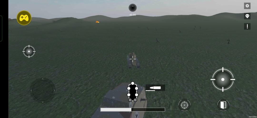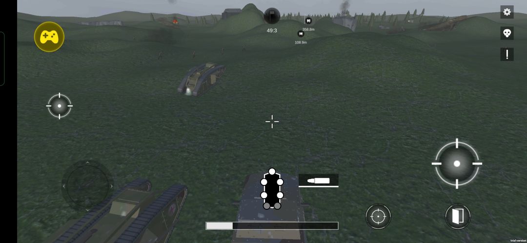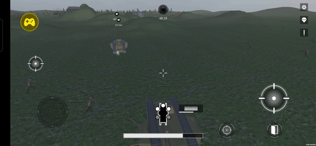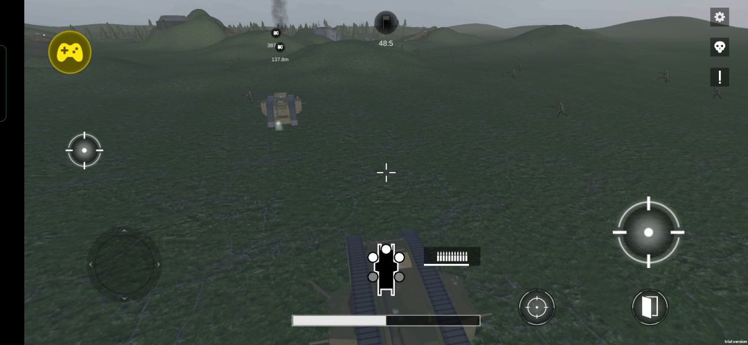 这样我们就可以开始估计了,我们先用手雷炸一下重坦,此时不好预估,再打一发就成了一半多一点,所以不好估量,我们估量轻坦。