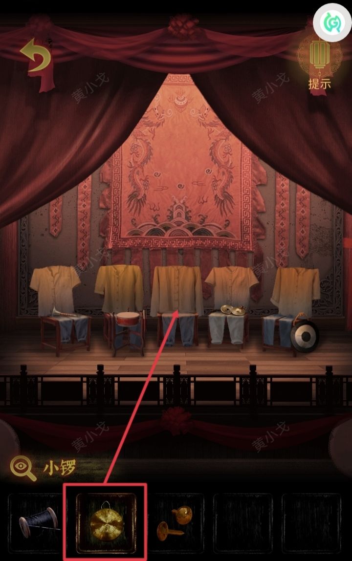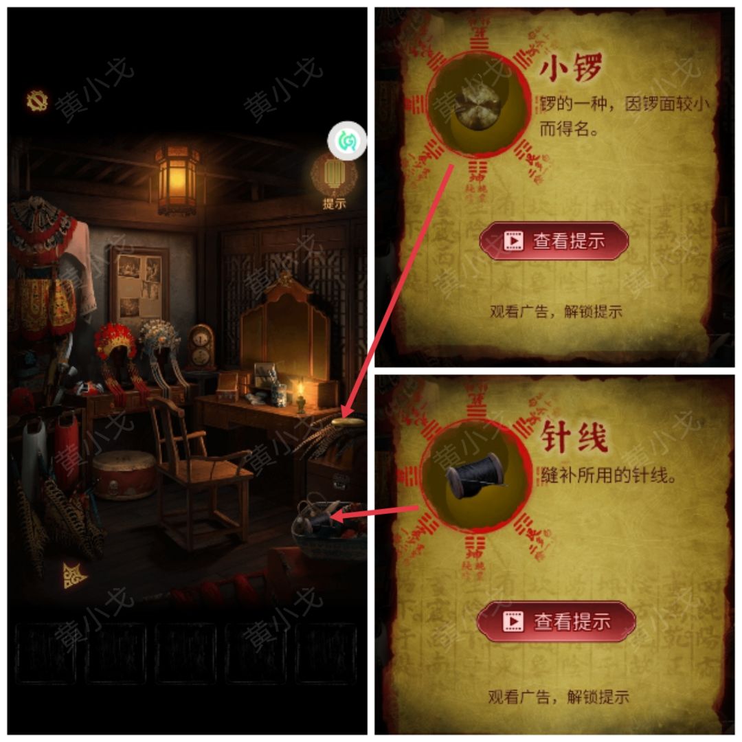 14.(戏楼-后台)获取工具篮里的【针线】,箱子上的【小锣】