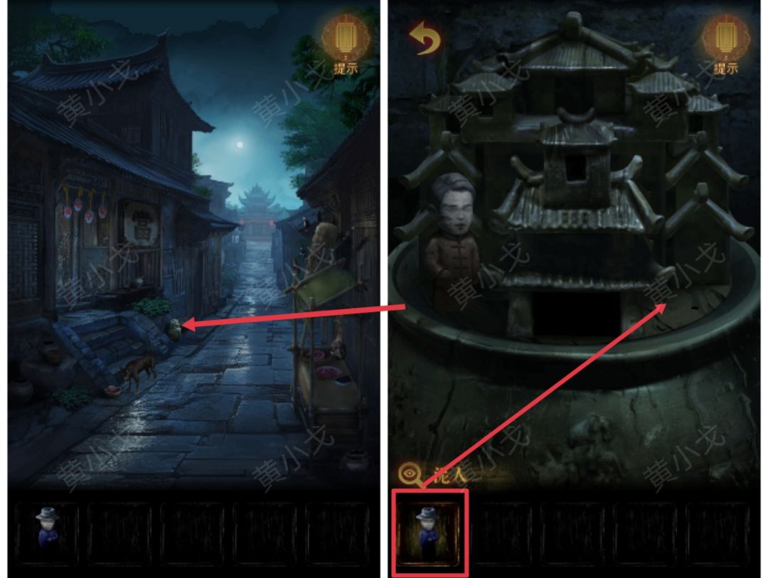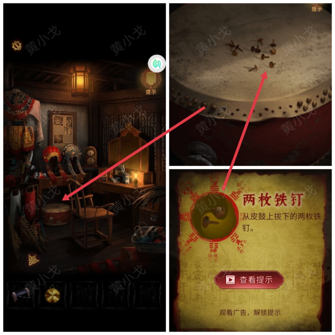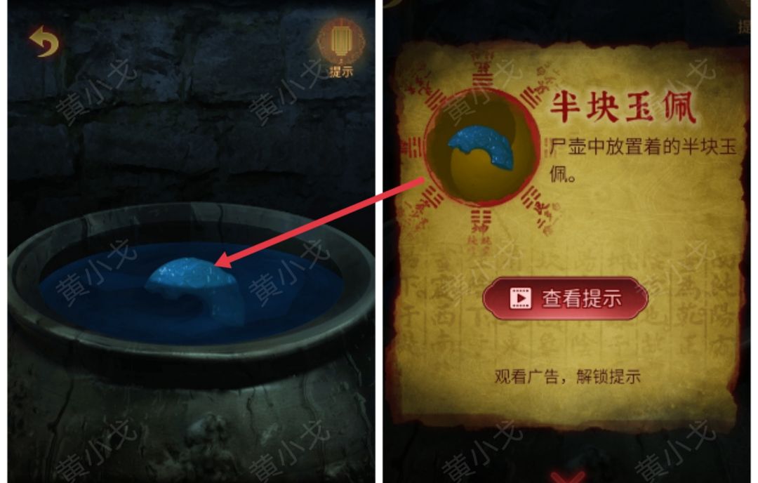 7.(戏楼外)点击门,拿【半块玉佩】给荣莲,打开戏楼的门