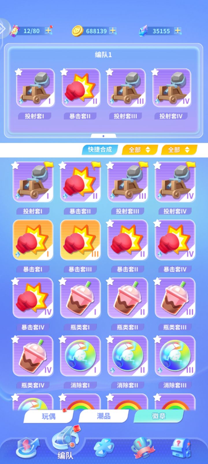 特性每个人都带投射器强化,攻击力最高的再带个攻击强化,投射器助攻,消除道具助攻这类能加玩偶攻击力的。