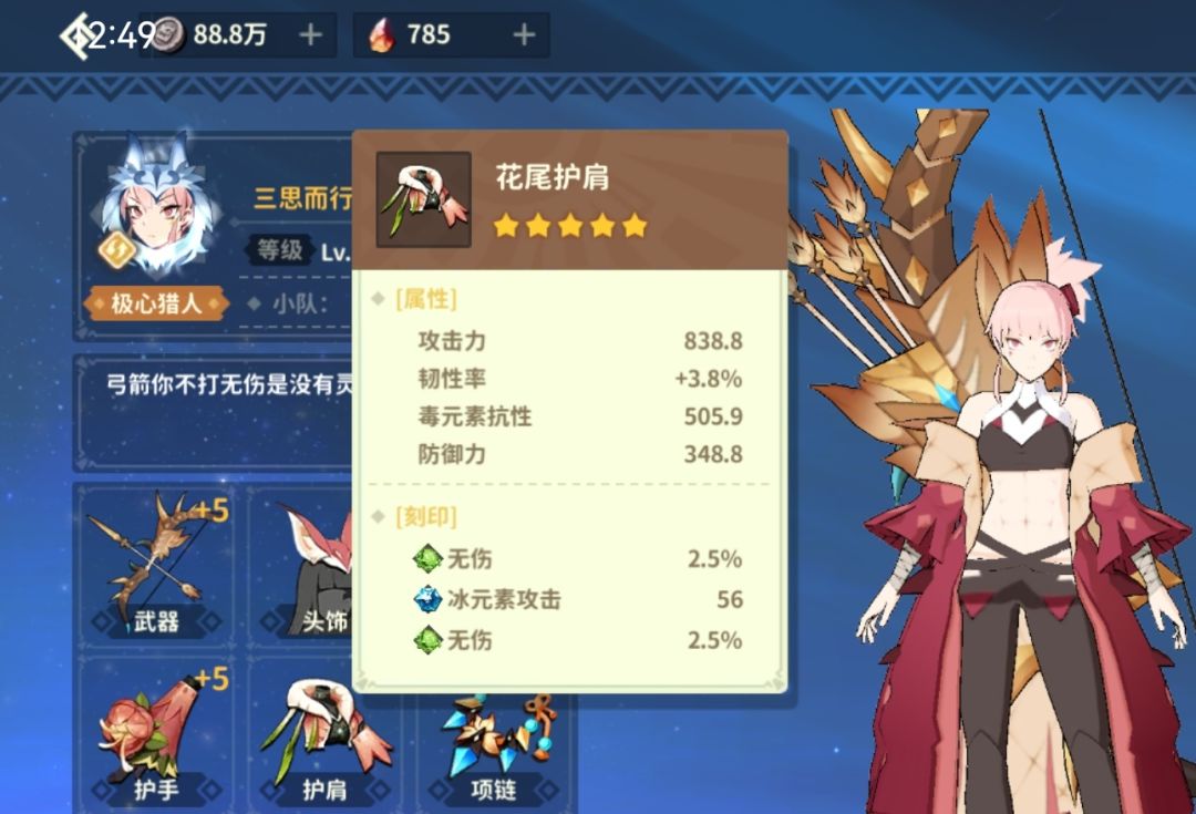 由于弓箭全堆元素也仅可触发一次元素异常,所以选择三蓄单箭伤害高的即可。其实三套装备之间差距很小,不追求极致不用太过计较,无伤更可以换成毒(碰到毒免就很难受了,极心两个)