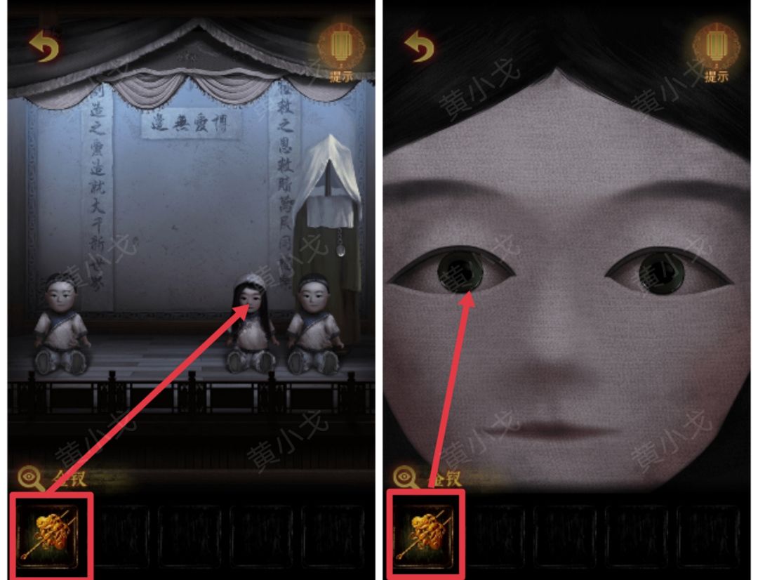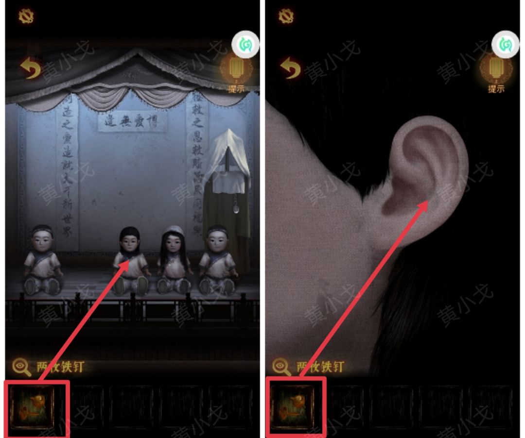 7.对戏台上的第三个娃娃使用【两枚铁钉】
