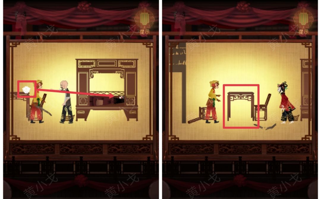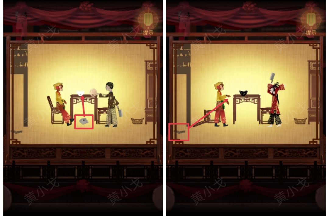1.(戏楼-看台)点击左边的桌子,获得【一根金条】(注意看吊坠上的图案:耳朵👂🏻)
