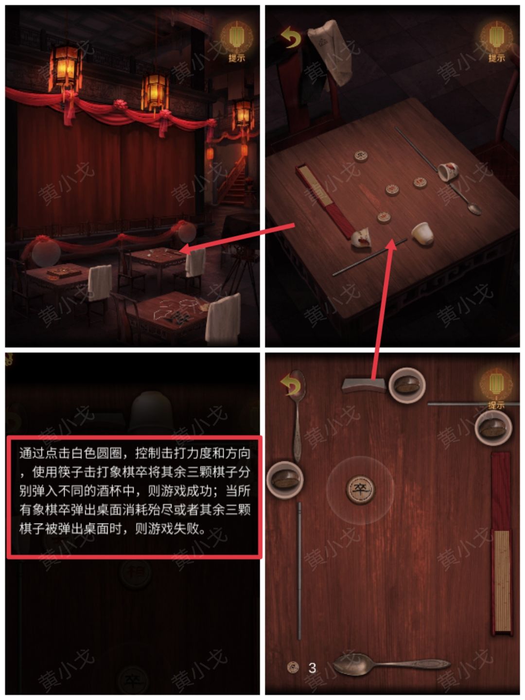 11.点击右边的桌子,查看游戏规则,完成击打象棋小游戏