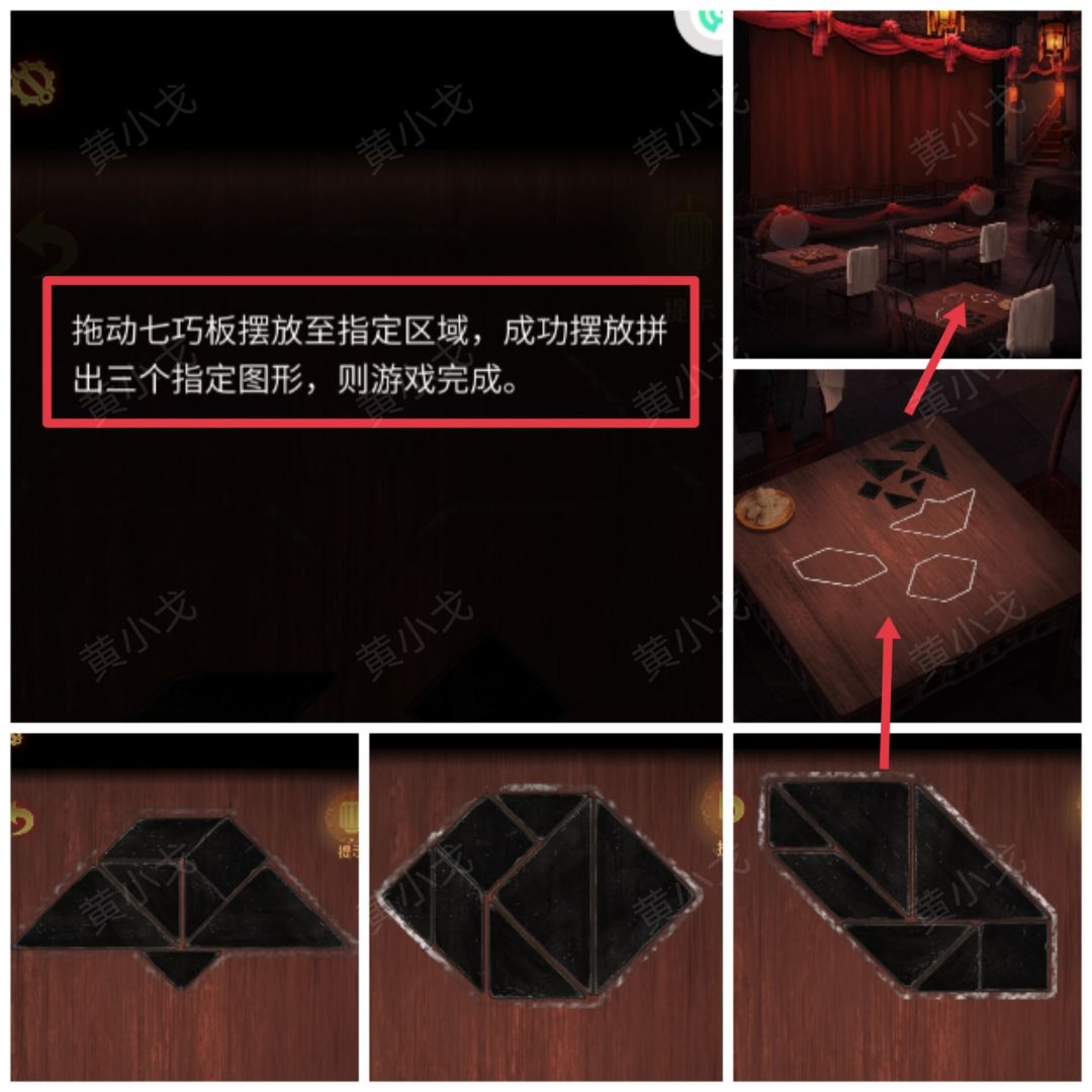 12.点击中间的桌子,查看游戏规则,完成拼指定图形小游戏(3关)