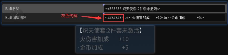所以我们要想实现这个功能也很简单,我们只需要预先准备两个buff(以2件套为例),一个是灰色的未激活套装buff,一个是激活的彩色套装buff。