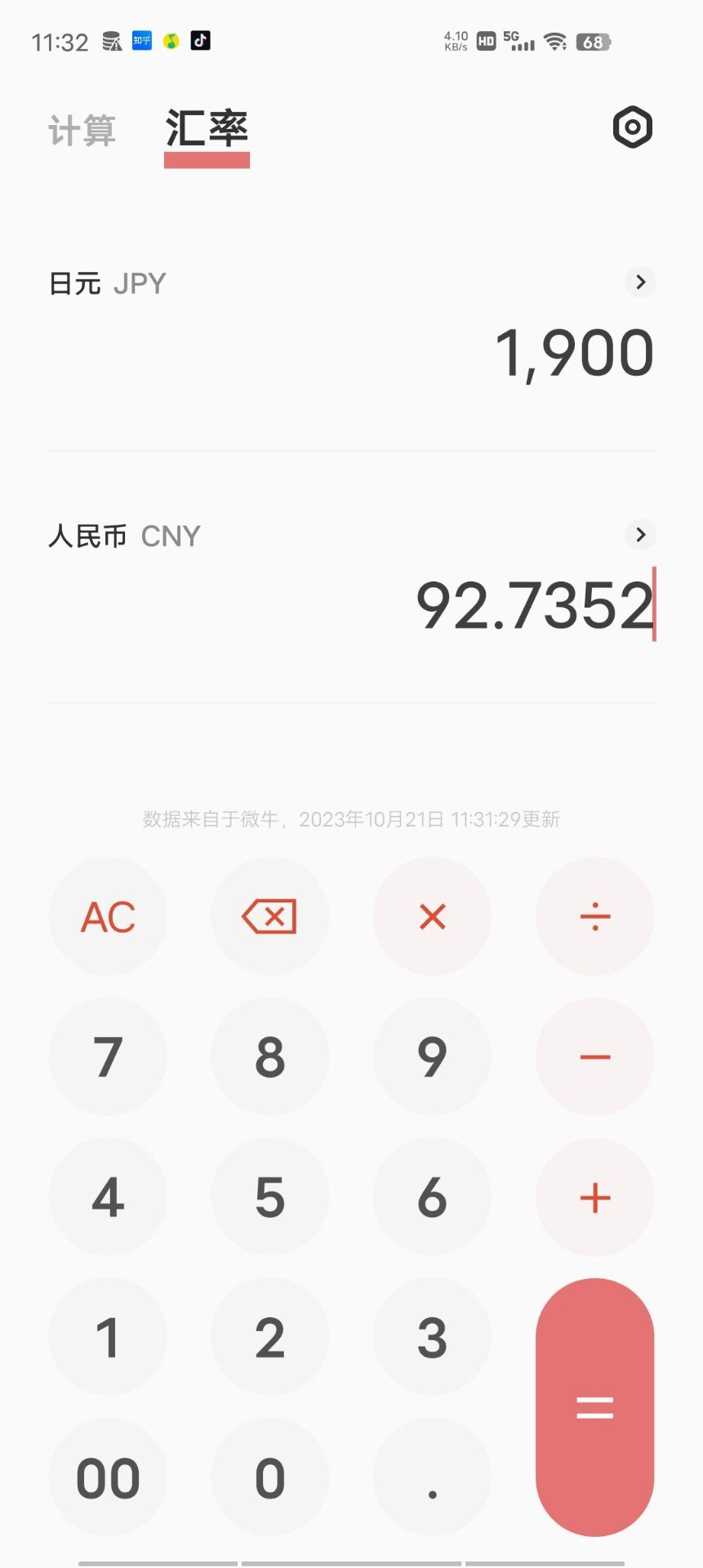 1900日元约等于92RMB
