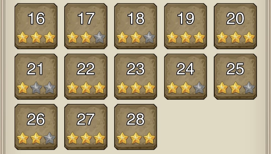 给4盾都升到39级,肉已经够了,剩下经验进阶都给火男和战意魔枪,加强输出。其中第21关,对面4刺客会略困难,其他还是比较容易。