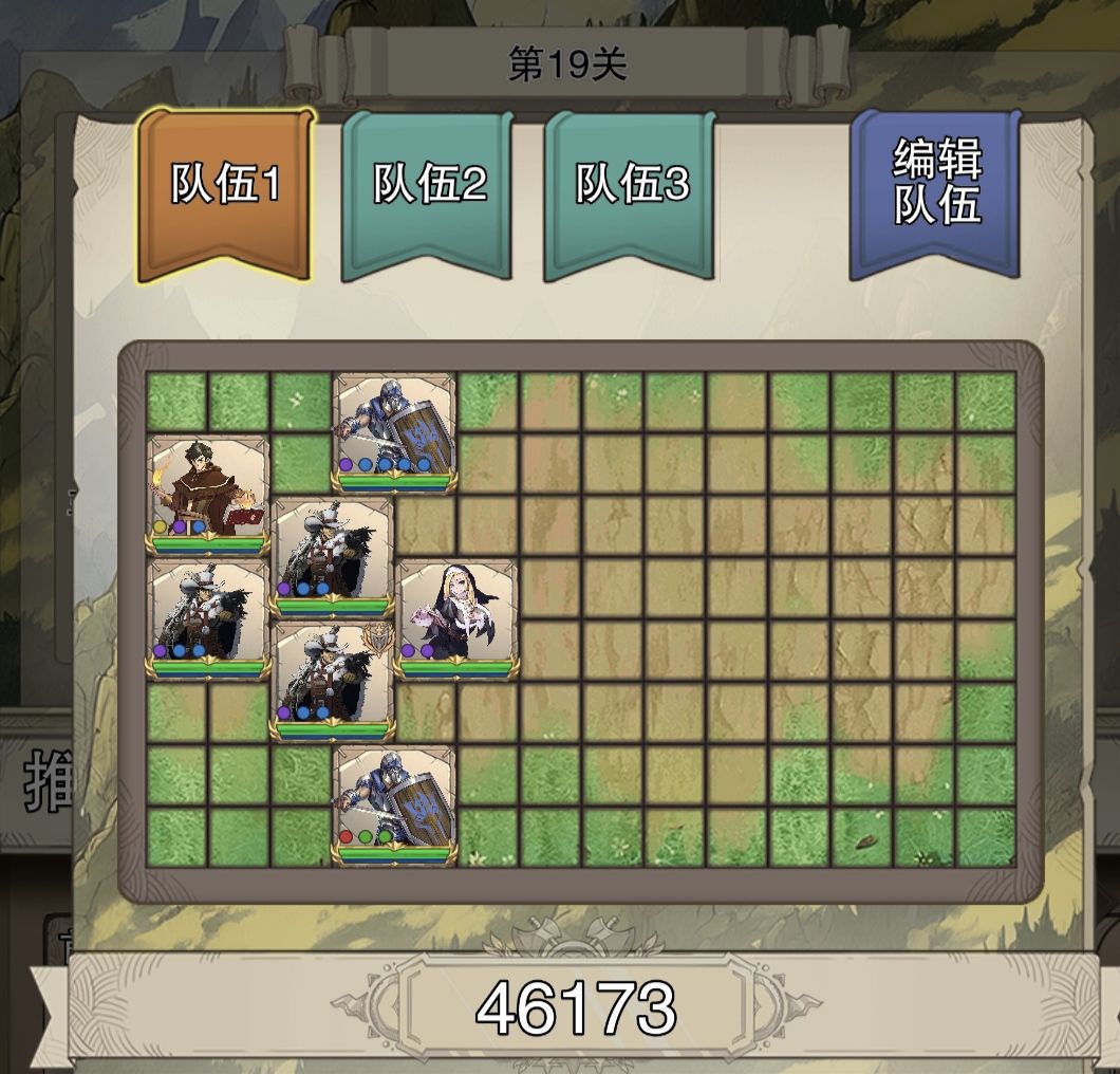 到19关再换成如下阵容,拉开输出与前排距离。