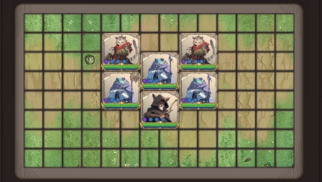 由两只猫战士+三只青蛙+猫刺客组成的阵容
