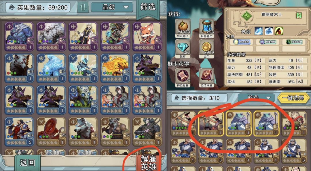 过了第15关,开启解雇英雄功能,在主页阵容界面进去右下角《解雇英雄》进入,选定要解雇的英雄,再点确定即可。解雇英雄奖励经验、进阶道具、钻石金币和洗练书。