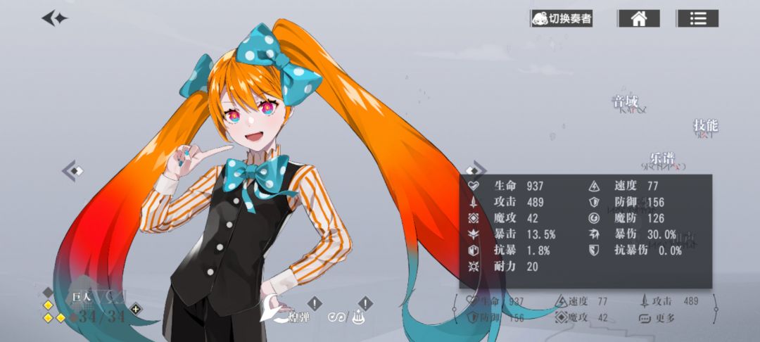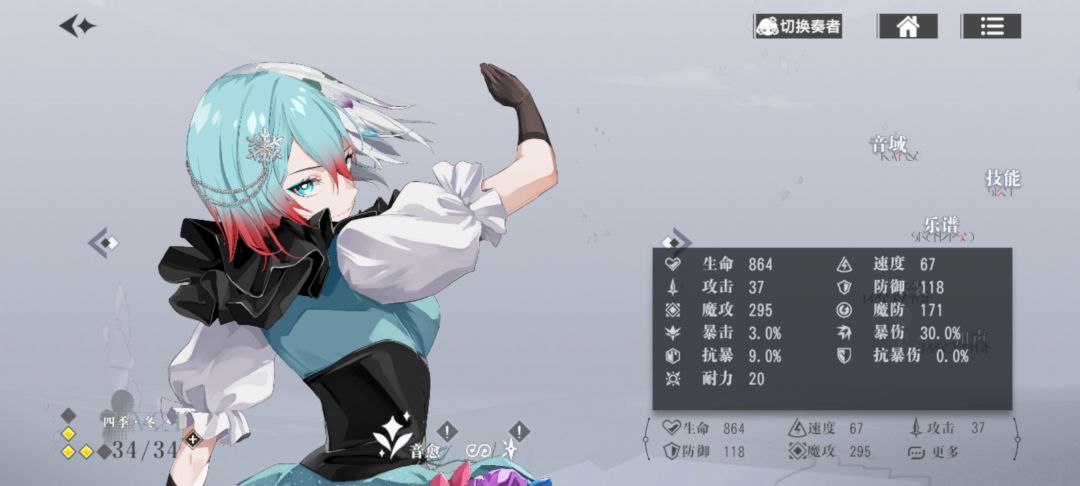 如图3、4、5、6所示此方法不需要什么练度(本人主队抗争队,把主队边角料材料拿出来养的这四个角色,没什么练度,音域完全没有觉醒过,数值也都很低,基本只是拉满了等级。)