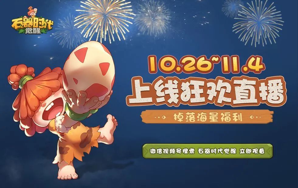 《石器时代:觉醒》上线倒计时4天,微信视频号上线狂欢直播即将开启!10月24日至10月26日,官方直播间将一连三天开启狂欢直播,与你一同进行上线倒计时。