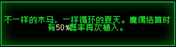 (5)五号位旋转木马,带它完全是因为噪音使用初始武器已经具有高效的单体毒属性附着手段不需要额外带种子文件,再看它的实际效果魔偶结算时有概率再次植入,稍微节省了那么一点对单体的附着时间,在对群上则效果较为明显,只能说不是那么好用。