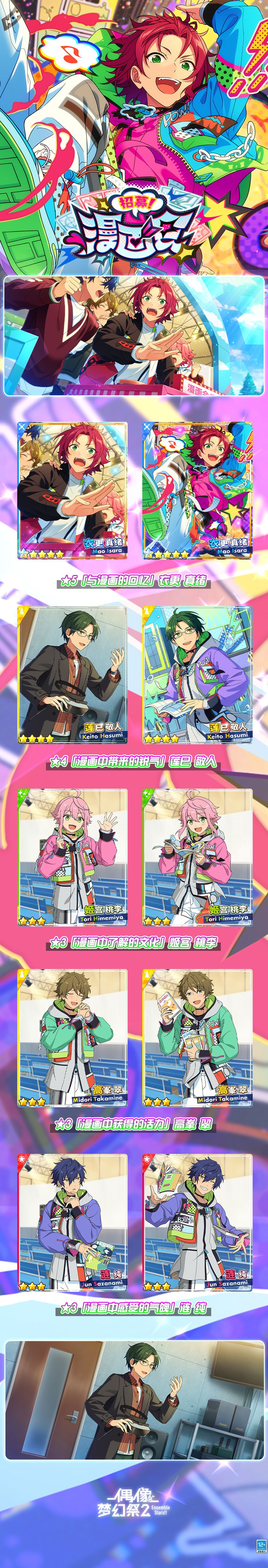 一、「招募!漫画会」限定卡池内容如下: