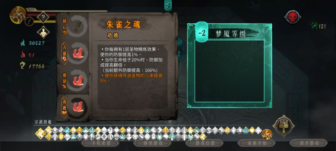 1.精炼圣物选生命,因为梦魇体魄小技能以用生命上限加伤害,量变引起质变,配合朱雀的精炼加成伤害爆棚。